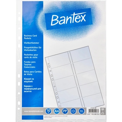 Obal prospektový A4 Bantex na 20 kusů vizitek, 80 my, 10 ks. PP, prospektový obal čirý s euroděrováním, rozměr otvorů 10 x 6 cm.