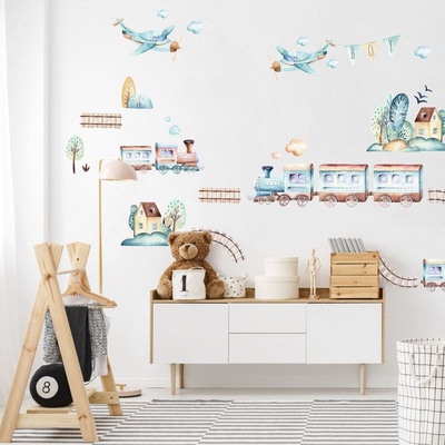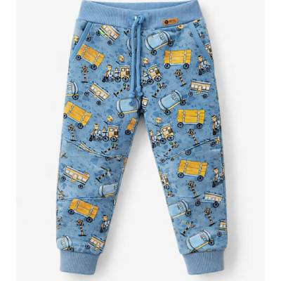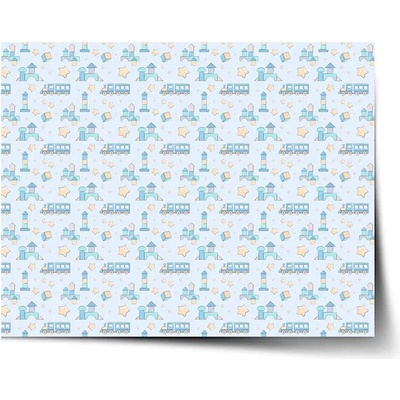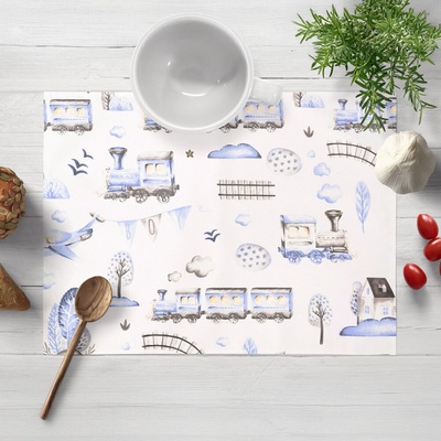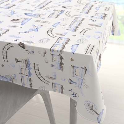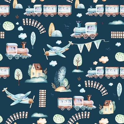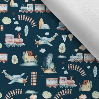 Takoy Látka s potiskem kočárkovina TD/NS trains/vláčky tmavě modré doprodej