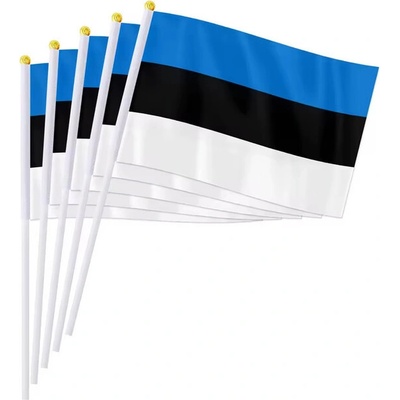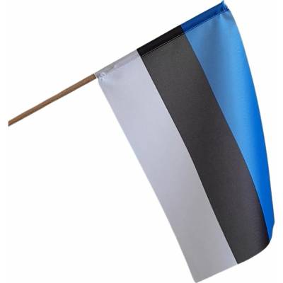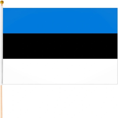 Malá vlajka Estonské republiky Rozměry vlajky: 45 x 30 cmMateriál: 100% polyesterDélka dřevěné tyče: 61 cm *Horní zakončení vlajky obsahuje zlatou plastovou kouli nebo béžovou...