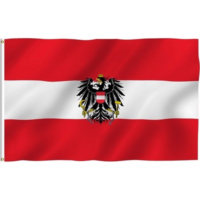 Vlajka Rakouska Státní vlajka vhodná jako dekorační předmět pro výzdobu interiéru nebo exteriéru. Ve dvou bočních rozích kovová oka o průměru 1 cm pro možnost...