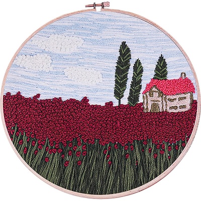 Sada na vyšívání s motivem vlčích máků s krajinou a domečkem. Vyšívá se na předtištěnou tkaninu pomocí příze mouline (mulinka). Vyšívací sada obsahuje vyšívací tkaninu s...