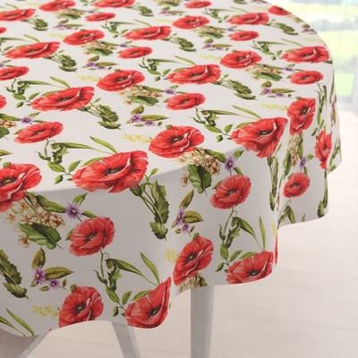 Dekorační kulatý ubrus na jídelní stůl se vzorem vlčích máků na bílém podkladu. Je ušitý z kvalitní a pevné dekorační látky s digitálním tiskem, se složením z 40% bavlny a 60%...