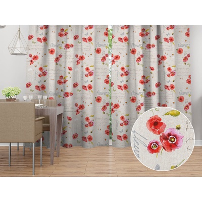 Dekorační závěs se vzorem vlčích máků a kopretin na režném podkladu. Je ušitý z kvalitní a pevné látky z 55% bavlny a 45% polyesteru. Gramáž látky je 190 g/m2. Závěs Porto je...