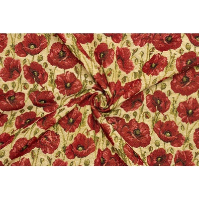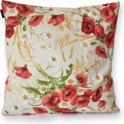 Dekorační povlak na polštář se vzorem vlčích máků a kopretin na režném podkladu. Je ušitý z kvalitní a pevné látky z 55% bavlny a 45% polyesteru. Gramáž látky je 190 g/m2....