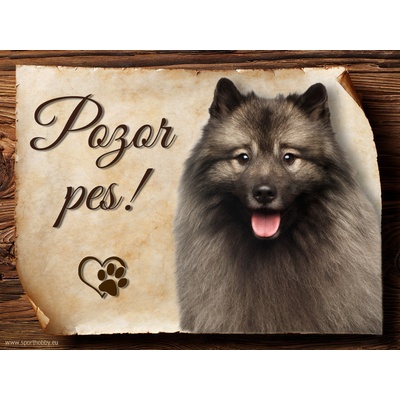 Cedulka Německý špic vlčí, hliníková s nápisem "Pozor pes!" Kovová výstražná venkovní cedulka oznamující to či ono, že se ve vašem obydlí může návštěvník setkat s vašim...