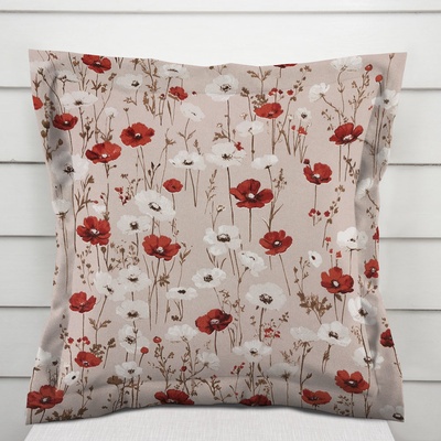 Dekorační povlak na polštář se vzorem vlčích máků a kopretin na režném podkladu. Je ušitý z kvalitní a pevné látky z 55% bavlny a 45% polyesteru. Gramáž látky je 190 g/m2....