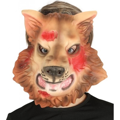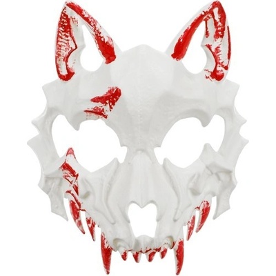 Halloweenská děsivá maska ve tvaru krvelačného vlkodlaka, lebka s vyceněnými zuby od krve. Univerzální velikost, uchytíte pomocí gumičky. Materiál: plast Rozměr: 17 x 20...