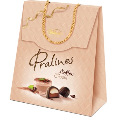 Krásná dárková taštička se zlatou šnůrkou ukrývá pralinky z hořké čokolády s náplní Coffe a krémem s kávou. Pralinky můžete vzít s sebou na návštěvu, vzhledem ke svému...