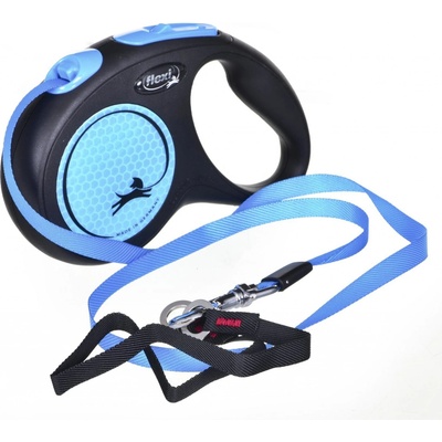 Flexi New Neon M pásek 5 m modré 25 kg New Neon je vynikající vodítko, které díky reflexním nálepkám a neonově zbarveným prvkům vyniká za všech povětrnostních podmínek....