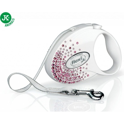 Vodítko Flexi Glam Splash Pink pásek S 3m/12 kg a M 5m/25kg bílá - Samonavíjecí vodítko s páskem pro psy. Módní záležitost! Luxusní vodíkto s elementy Swarovski®. - Čas...