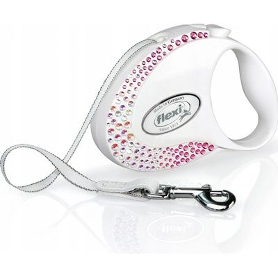 Vodítko Flexi Glam Splash Pink pásek S 3m/12 kg a M 5m/25kg bílá - Samonavíjecí vodítko s páskem pro psy. Módní záležitost! Luxusní vodíkto s elementy Swarovski®. - Čas...