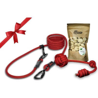 Stopovací šňůra je vyrobena z pevného popruhu. Karabina je připevněna kůží a nýty. Šňůru můžete použít buď k výcviku - obrana, poslušnost či k venčení, pokud se bojíte svého...
