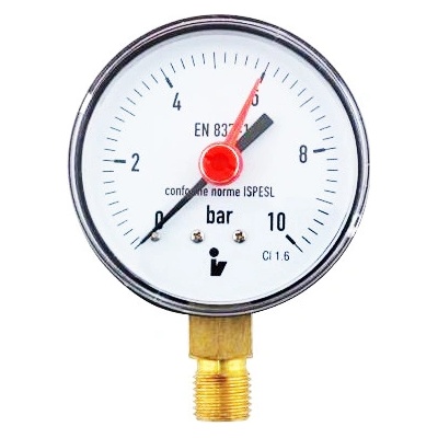 Manometr se spodním vývodem 1/4", průměrem budíku 63mm a měřícími rozsahy 0-10 BAR. Pro měření tlaku v rozvodech vody, topení a vzduchu. Mosazný připojovací závit, tělo z...