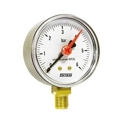 Manometr se spodním vývodem 1/4", průměrem budíku 50mm a měřícími rozsahy 0-6 BAR. Pro měření tlaku v rozvodech vody, topení a vzduchu. Mosazný připojovací závit, tělo z...