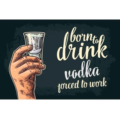 RETRO plechová cedule Born To Drink Vodka – Porced To Work rozmer : 30 x 20 cm materiál : plech s vytlačeným reliéfním povrchem - vysoce kvalitní tisk (Může a nemusí být...