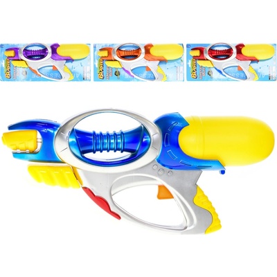 Vodní pistole s pumpou. Vybírat můžete ze čtyř barevných variant. Rozměr: 40 cm Materiál: plast Barva: fialová, červená, modrá, oranžová Baleno na kartě.