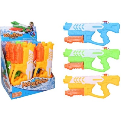Puška vodní 34 cm. Možná varianta display box - 12 ks. 3 ast - žlutá, modrá, zelená Ve vodě nebo na souši, všude číhá nebezpečí. Buďte připraveni a mějte po ruce svou vodní...
