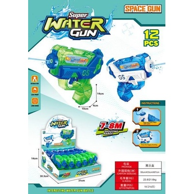 Dětská barevná plastová letní zbraň na vodu, ve dvou barevných provedeních. Ve vodě nebo na souši, všude číhá nebezpečí. Buďte připraveni a mějte po ruce svou vodní pistoli....