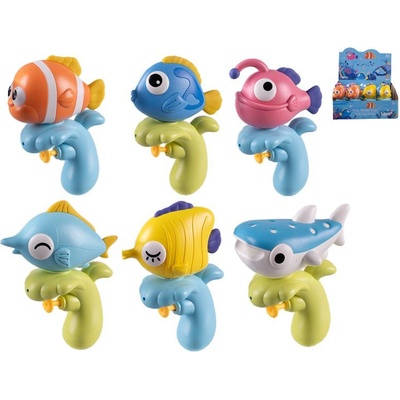 Vodní pistole RYBA v různých variantách. Rozměr: 15 cm Materiál: plast Druhy: Bodlok pestrý, Bodlok žlutý, žralok obrovský, delfín, klaun očkatý, mořský ďas