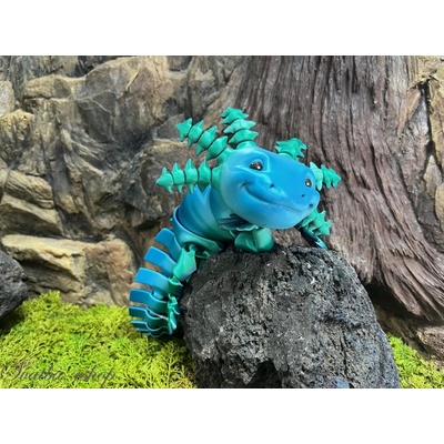 Krásný culící se vodní dráček, neboli Axolot modrozelené barvy, rozložení barev se může mírně lišit. Délka: 29 cm Nabízíme potvůrky, které sami vyrábíme na 3D tiskárnách....