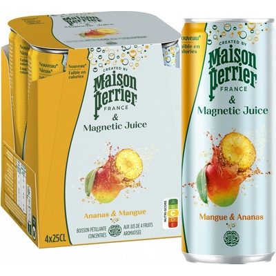 Maison Perrier Magnetic Juice 0,25l plech – Ananas & Mango, magnetická přitažlivost mezi lahodným ovocem pronikajícím do perlivé vody pro osvěžující zážitek Neodolatelnější než...