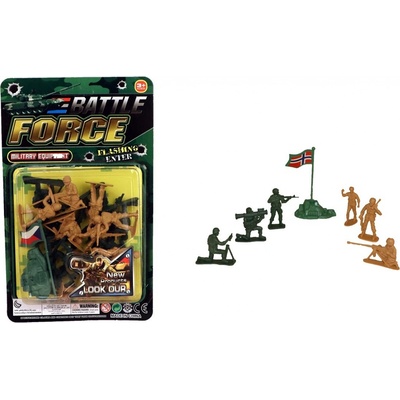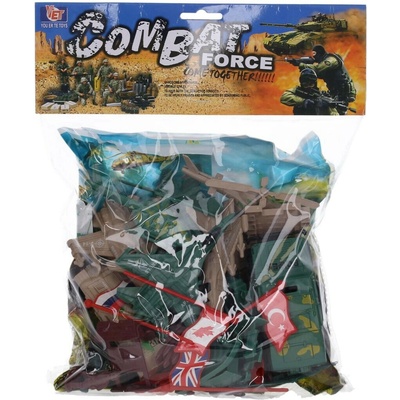 Sada vojenská v sáčku z plastu, obsahující propracované postavičky vojáků se zbraněmi a doplňky. Součástí balení jsou kromě oplocení také vojenská vozidla (vrtulník, motocykl,...