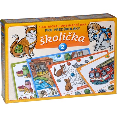 Školička elektrická výuková hra rozšiřuje vědomosti, vyžaduje postřeh, nutí děti všímat si vztahů mezi předměty, porovnávat je a přiřazovat odpovídající předměty k sobě bez nutnosti umět číst, neboť listy neobsahují žádné texty. Každý list je zaměřen na určitou oblast...