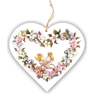 Dřevěné srdce - vonítko do prádla 7,5 cm s vůní pačule a obrázkem - ptáčci. Tloušťka 10 mm. Parfémované dřevěné srdce k provonění vašich šatníků.