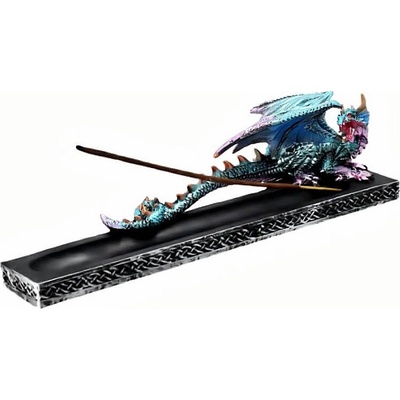 Ručně malovaný stojánek na vonné tyčinky z kvalitního polyresinu. Stojánek na vonné tyčinky ve tvaru světle modrého draka, který bedlivě stráží vonnou tyčinku. Ilustrativní...