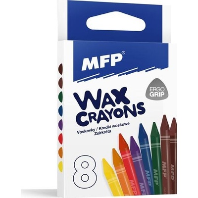 Voskovky s trojhranným tělem. Jasné barvy, měkký vosk. Nezanechávají stopy na rukou, tělo je kryto papírem.