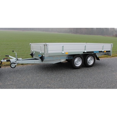 Odolný brzděný přívěs se svařovaným rámem s výztuhami pod podlahou a překližkovými bočnicemi. Ve standardní výbavě je zahrnuto: robustní svařovaný pozinkovaný rám pevná...
