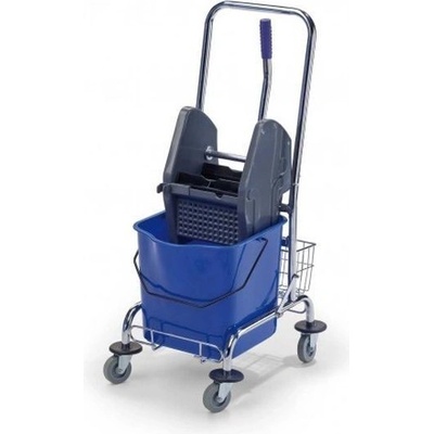 Úklidový vozík s jedním kbelíkem, je velmi oblíbený díky svým rozměrům, kvalitnímu ždímači a odkládacímu košíku. - Jeden kbelík se ždímačem s madlem, objem 1x 23 l. - Drátěný...