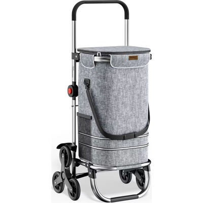6-kolečkový nákupní vozík Vileda Gimi Tris Floral s rámem z oceli a pryskyřice a šedou polyesterovou taškou o objemu 52 litrů. Gimi Tris Floral je pěkný 6-kolečkový nákupní...