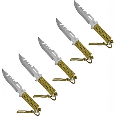 Vrhací nože tvaru dýky s hladkým ostřím. Jsou vyrobeny z nerezové oceli a rukojeť nože je omotaná červenou šňůrou, paracordem. V balení najdete tři nože a nylonové pouzdro. -...
