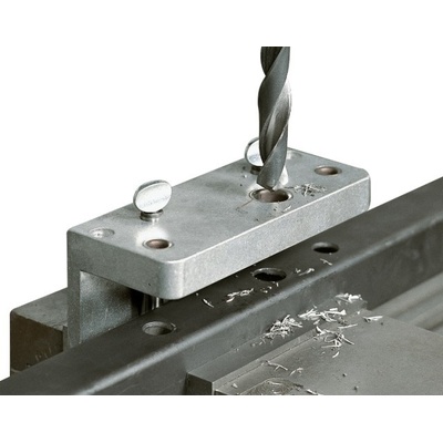 Profesionální šablona pro kolmé vrtání otvorů pro kolíky nebo hmoždinky. Pro vrtáky 3 - 12 mm a dřevěné hmoždinky 6 - 10 mm. protiskluzová gumová základna pro všechny...