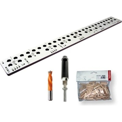 Vrtací šablona sada - 900 mm + ZDARMA 100 ks kolíků 8 x 35 SNADNÉ ZPRACOVÁNÍ CELÉHO KORPUSU - JEDNODUCHOST A RYCHLOST Univerzální vrtací šablona je určena pro přesné a...