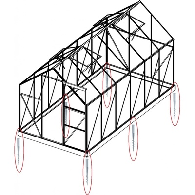 Univerzální kotvící systém vhodný pro většinu typů skleníků. Jednoduše, bezpečně a relativně rychle ukotvíte skleník k zemi pomocí systému zemních vrutů o délce 500 mm. Počet...