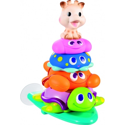 Balení obsahuje: Hračku do vody žirafa Sophie: plave po vodě, a když ji zmáčknete, stříká vodu! 4 zábavné stříkací hračky, které můžete upevnit na vanu nebo na zeď: kraba,...