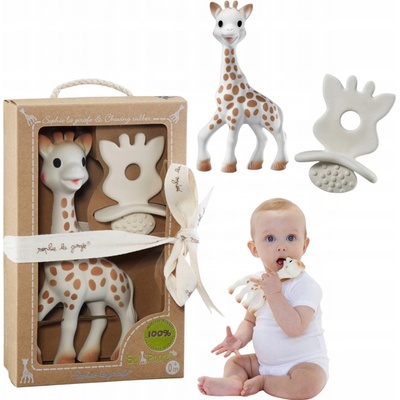 Krásná sada se žirafou Sophie a kousátka v balení z recyklovatelného materiálu. Kousátko s integrovaným držadlem ve tvaru hlavičky žirafy Sophie, díky kterému jej snadno...
