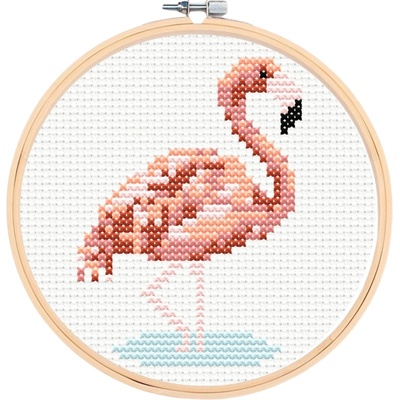 Jednoduché křížkové vyšívání - zvířátka - motiv plameňák - křížková výšivka - včetně předlohy a rámu - motiv plameňák - pro děti od 12 let - rámeček 125 mm - 4x nit, 2x...