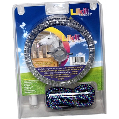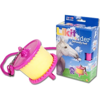 Praktický držák na ochucený liz pro koně Likit. Kvalitní plast. Zavěšení na lano. Různé barvy.