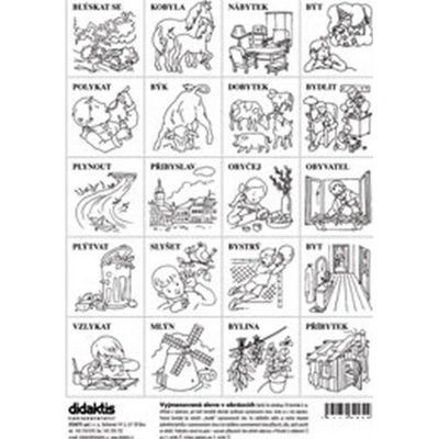 Každý list obsahuje 20 čtverečků – kartiček k vystříhání a vybarvení, které tvoří černobílý obrázek vystihující vyjmenované slovo, které je u něj psacím písmem napsáno. Pomocí...