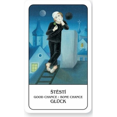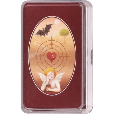 Obrazy na těchto kartách vytvořila známá a populární česká malířka a filmová herečka – Iva Hüttnerová podle klasické systematiky 32 vykládacích karet. Zdařilý revers s netopýrem...
