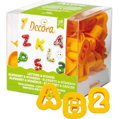 Vykrajovátka ve tvaru abecedy a číslic. V balení 36 ks.