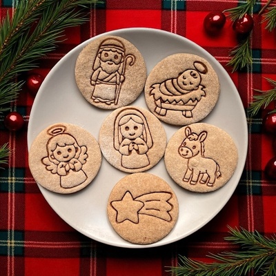 Vytvořte si doma vlastní betlém z voňavého perníku či sušenek díky sadě 7 kvalitních nerezových vykrajovátek s motivy betlémské scény. Foremky mají precizní tvary postav a...