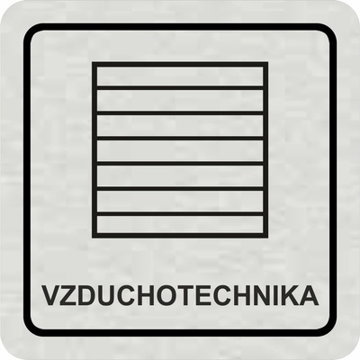 Piktogram vzduchotechnika je vyroben technologií tepelně chemického tisku na hliníkovou tabulku. Díky speciálnímu chemickému složení je výsledný tisk odolný proti poškrábání....