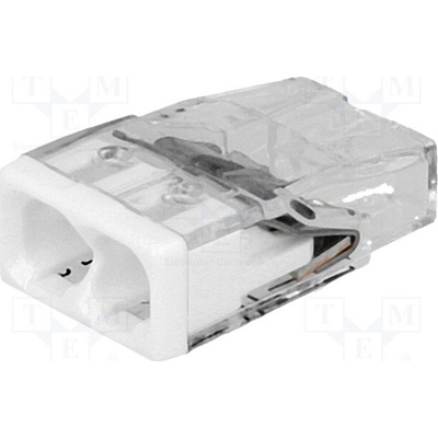 Krabicová svorka 2x0,5 - 2,5mm2 transparentní/bílá Wago svorka je bezšroubová varianta svorek, jež se používá v elektroinstalačních rozvodech. Stálý kontakt s vodičem zajišťuje přítlak pružiny, bez ohledu na průřez vodiče v daném rozsahu, který je uvedený pro...
