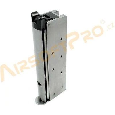 Celokový zásobník pro plynové blowback pistole WE 1911, M.E.U a Desert Warrior 4.3. Kapacita zásobníku je 15 ran. Stříbrná barva.