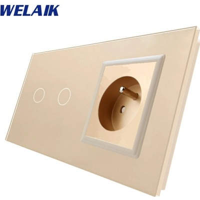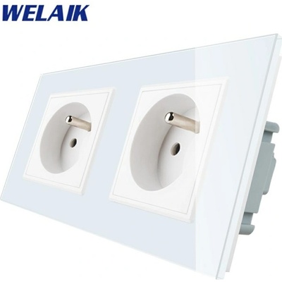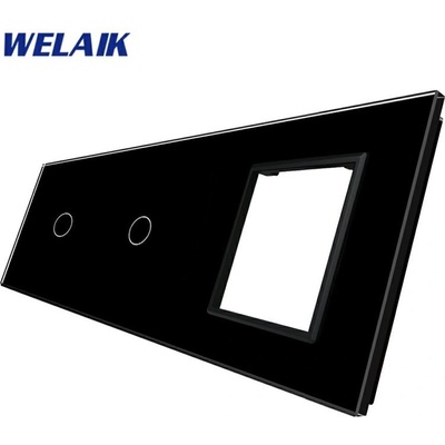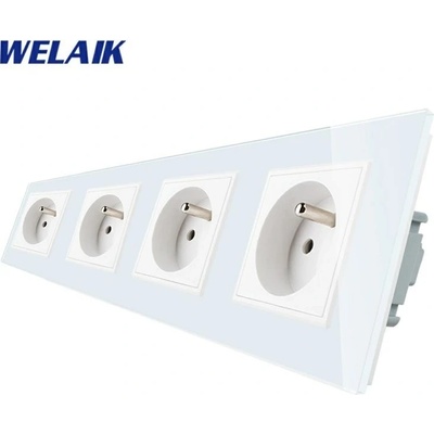 WELAIK čtyřnásobný panel vypínače skleněný 1*1*zás*zás - bílý Panel pro jednovypínač + jednovypínač + zásuvku + zásuvku, rozměr panelu 293 mm...