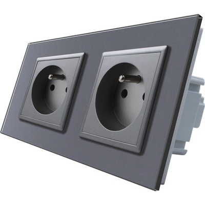 A2928DS1 WELAIK dvojnásobný skleněný panel 2+zásuvka – tmavě šedý. Krycí rozměry panelu - dvojrámeček má délku 151 mm (80+71).